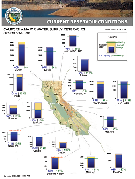 State and federal agencies need improved flexibility to manage water exports from the Delta. We need better science and adaptive management to meet our water supply needs while protecting the environment. Every major reservoir in California is well above its historic YTD average and most are at 90% of capacity or more. Still, the State Water Project and federal Central Valley Project allocations are at 40% and 50% respectively, with San Luis Reservoir the sole example that is below its historic average for today’s date.